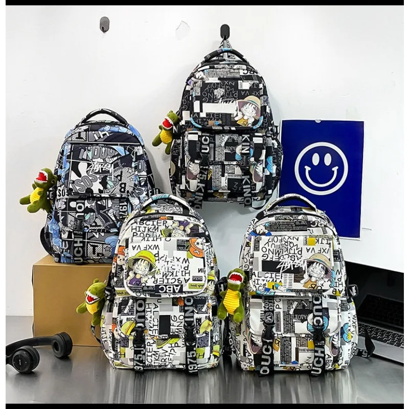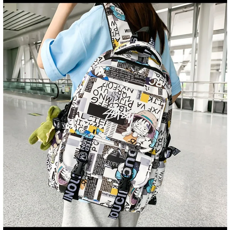 One Piece Graffiti Backpack Large Capacity School Bag for Men and Women Student Pack